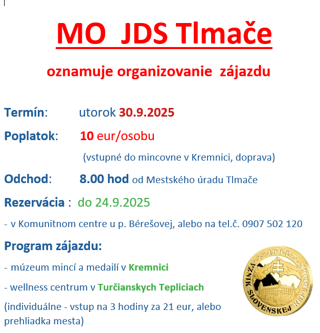 oznamuje organizovanie zájazdu