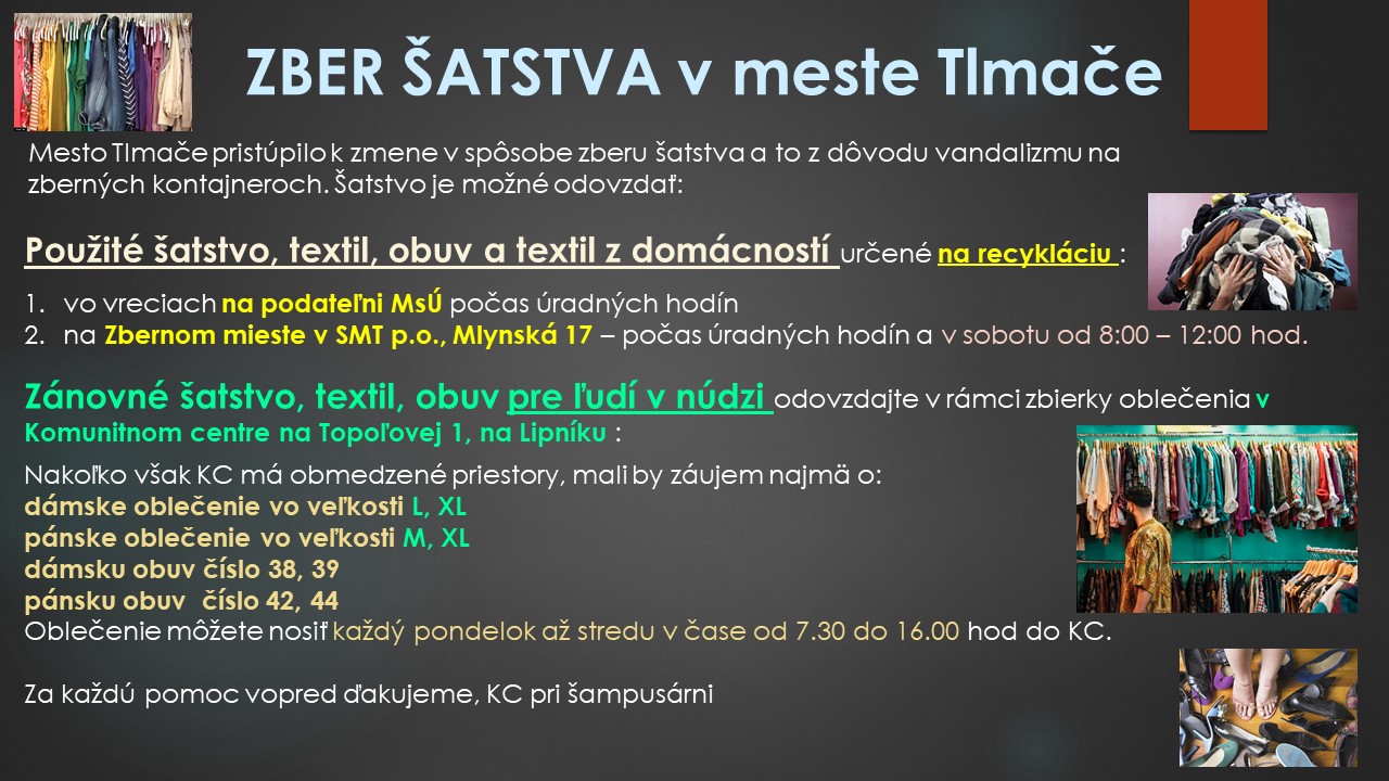 3. Mesto Tlmače presunulo zber šatstva na Zberné miesto